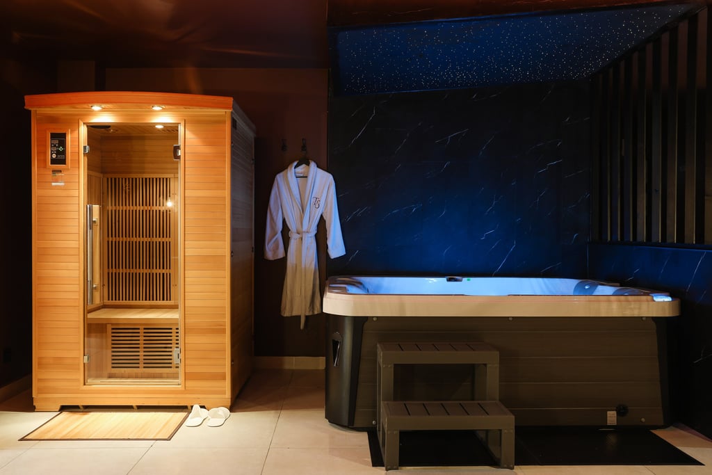 Le spa est chaud, la lumière est douce, le silence est total.